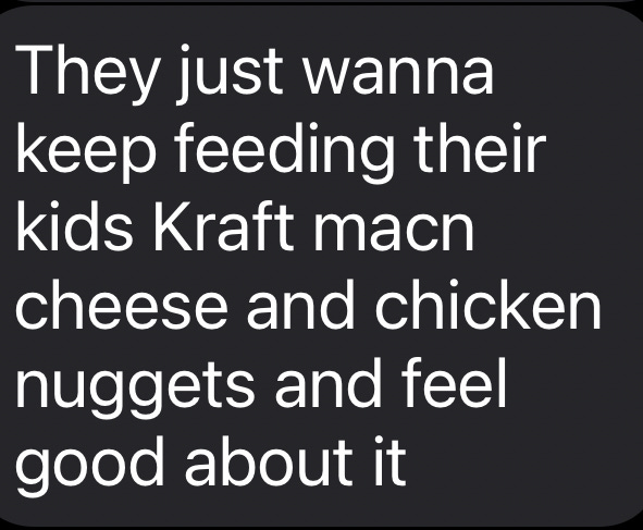 They want to keep feeding their kids Kraft mac n cheese